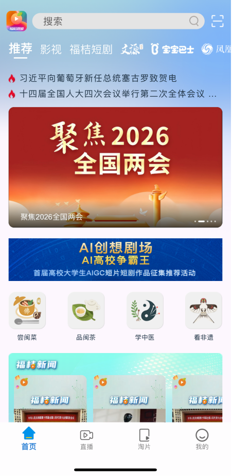 “福桔视频”App是集团打造的本土数字视听平台,也是集团深耕媒体融合、传承“福”文化的重要载体。平台包含福桔短剧、闽派原创短剧、文源溯闽等六大核心版块,配套重磅直播频道,覆盖全年龄段多元视听内容。作为集团从“大屏”到“全屏”的关键布局,它将持续融汇闽派文化、链接全球受众,打造有温度、有深度的闽味视听生活。